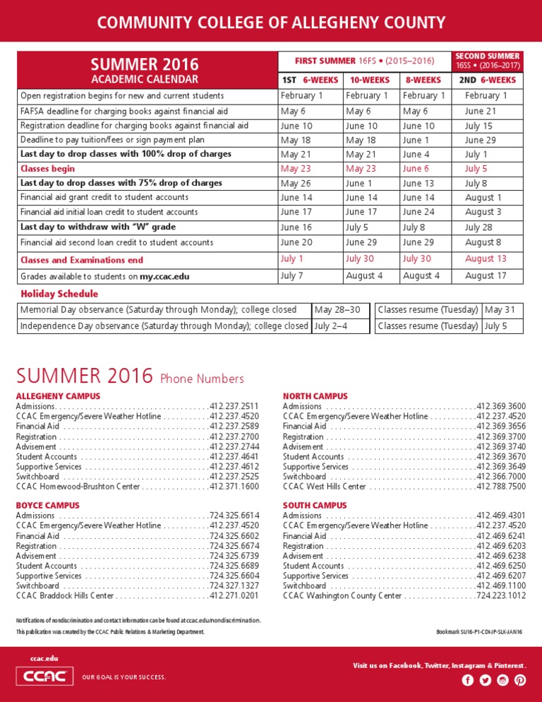 Source : www.facebook.comCCAC SUMMER 2016 Academic Calendar | PDF | Student Financial Aid